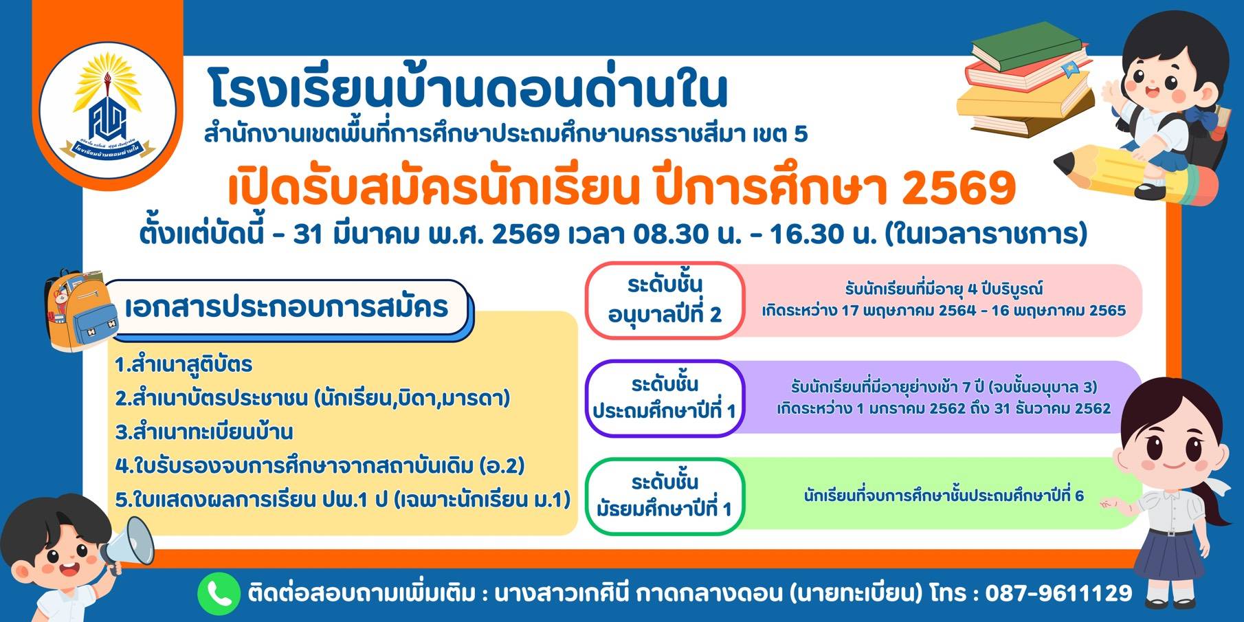 ยินดีต้อนรับเข้าสู่เว็บไซต์ โรงเรียนบ้านดอนด่านใน
